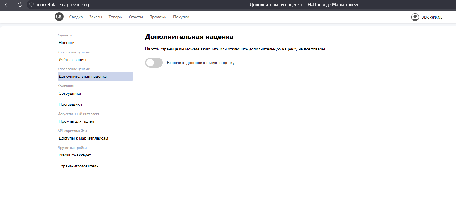 Мы добавили новую функцию - теперь вы можете вручную включать или отключать дополнительную наценку на все товары прямо в личном кабинете.